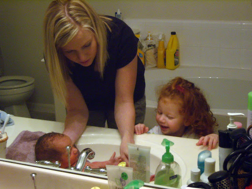 I just love bathing little babies! How's life treating you with two now? I remember being unnecessarily worried. Kenzi seems like a good "little mommy!" Love all the pics and take care! - the Blacks